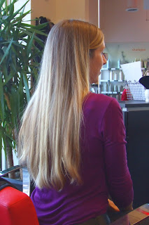 This was a really big deal for me. My mother is a hairdresser so no one else has ever cut my hair before and this was no mere trim. Here is the actual cutting off of the long ponytail donation as I ponder for a brief moment sprinting to the parking lot: